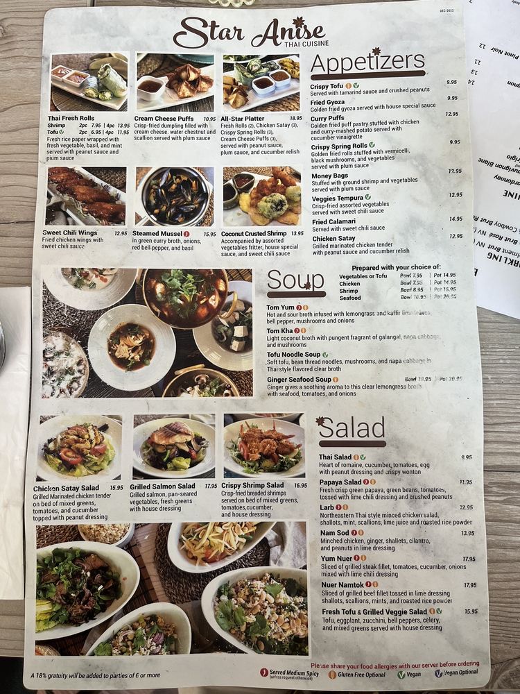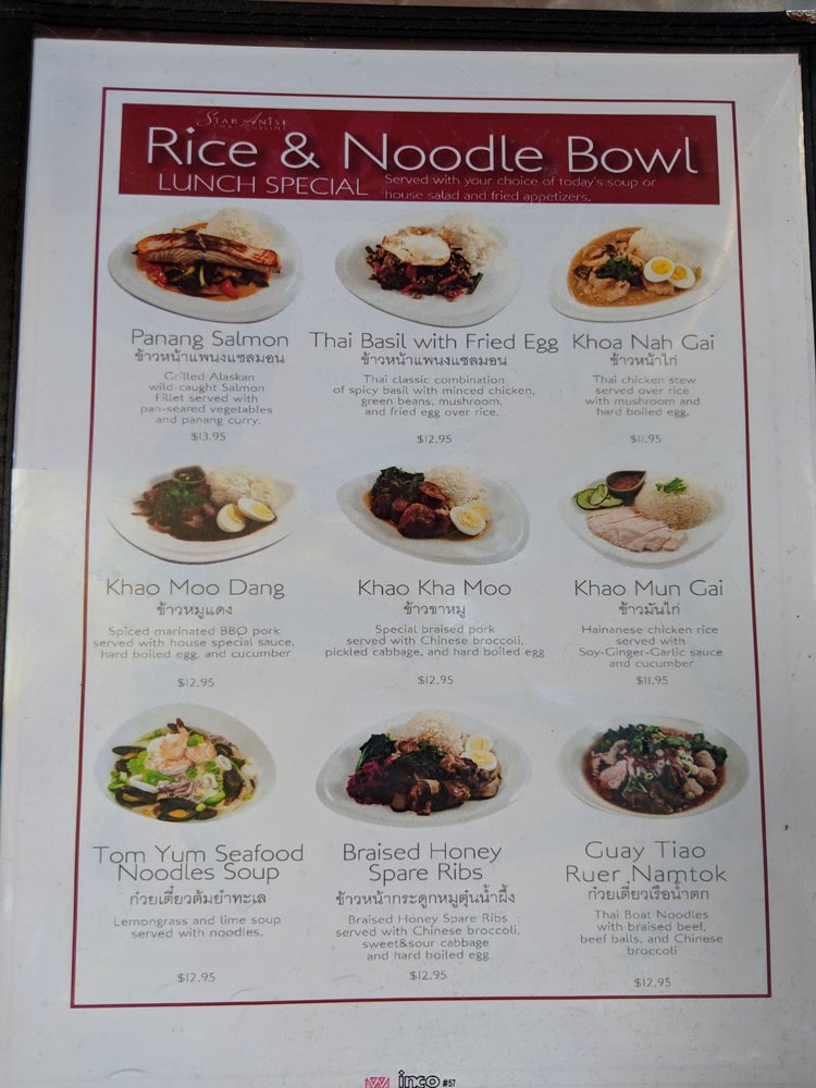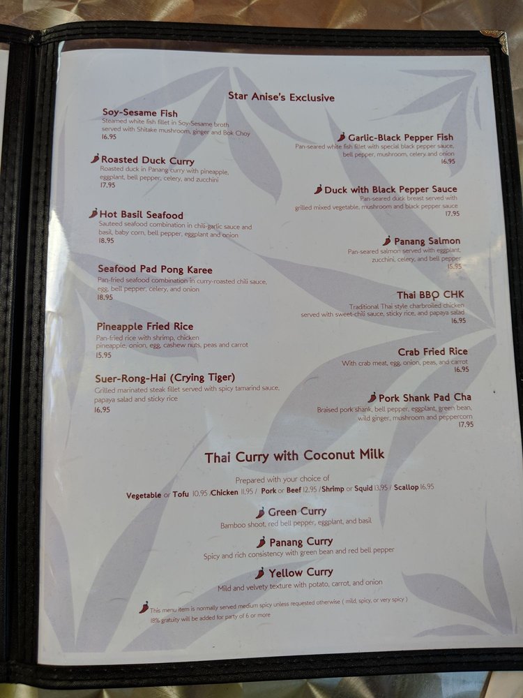 Star Anise Thai Cuisine Menu